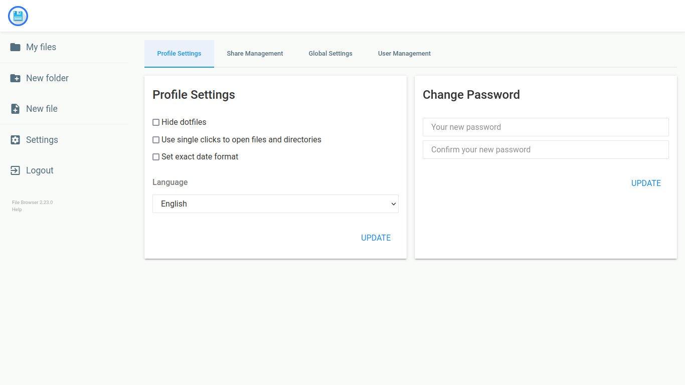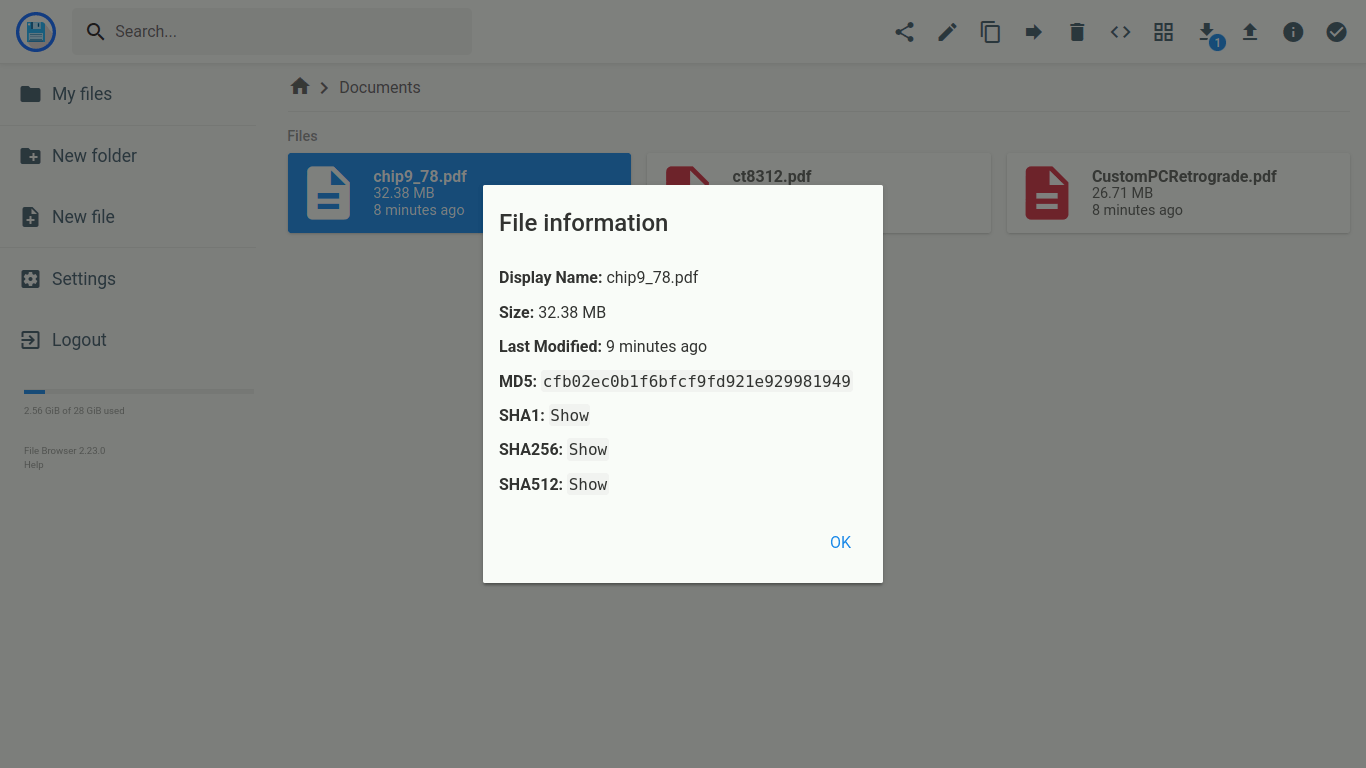 Nachdem Nextcloud für mich ausgeschieden war, musste eine andere Lösung für die Kernaufgabe "Dateiablage" her. Ich bin dabei relativ schnell auf Filebrowser gestoßen, der einerseits recht leichtgewichtig bzw. minimalistisch ist, andererseits jedoch neben den essenziellen Funktionen auch etwas Komfort bietet: