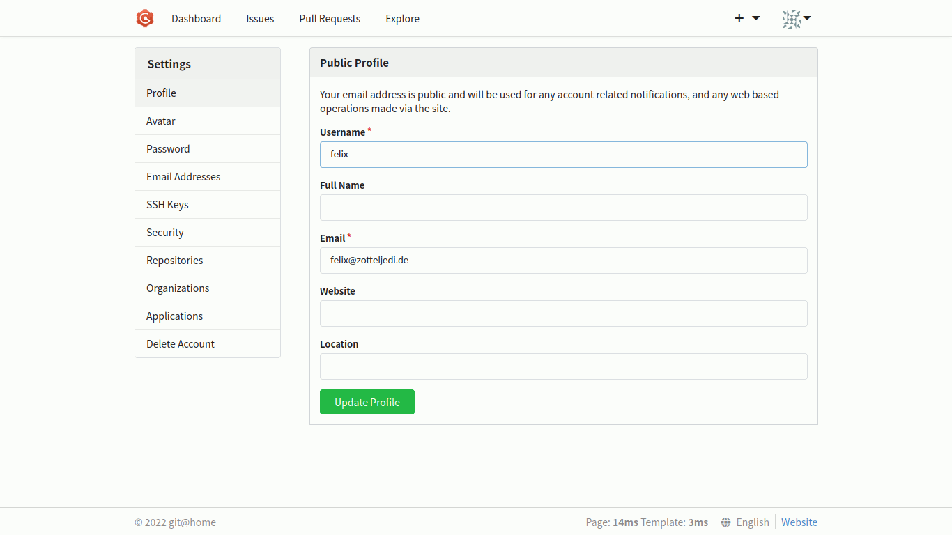 Um Repositories via SSH zu klonen muss in Gogs der eigene Public Key hinterlegt werden. Hat man noch keinen
