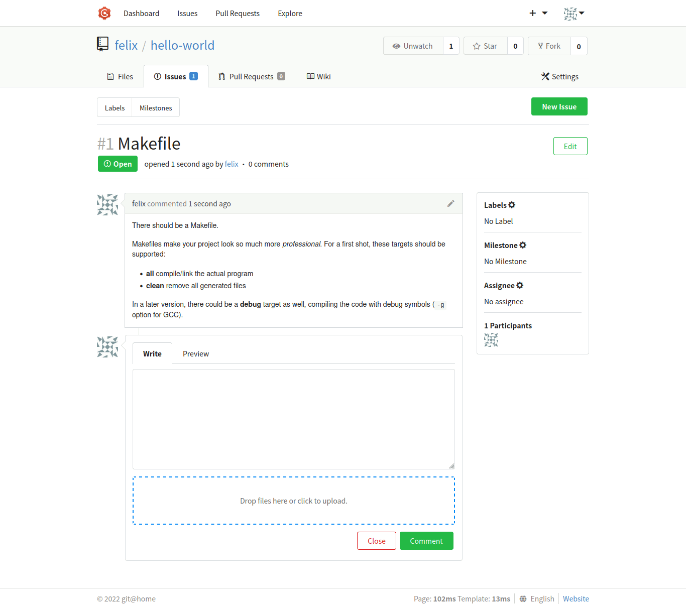 Für mich ist Gogs ein Volltreffer. Bisher hatte ich git immer nur direkt via SSH verwendet und Notizen bezüglich geplanten Änderungen oder Fehlern in einer Textdatei gesammelt. Für Projekte mit nur einer Person ist das zwar okay, aber ich denke das Ticket-System werde ich trotzdem gut gebrauchen können. Die Pull Requests und das Wiki sind wahrschenlich überdimensioniert, aber man muss es ja nicht nutzen. Auf jeden Fall ist die durchgängige Unterstützung der Markdown-Syntax nett und lässt die Notizen mit wenig Aufwand appetitlich aussehen.