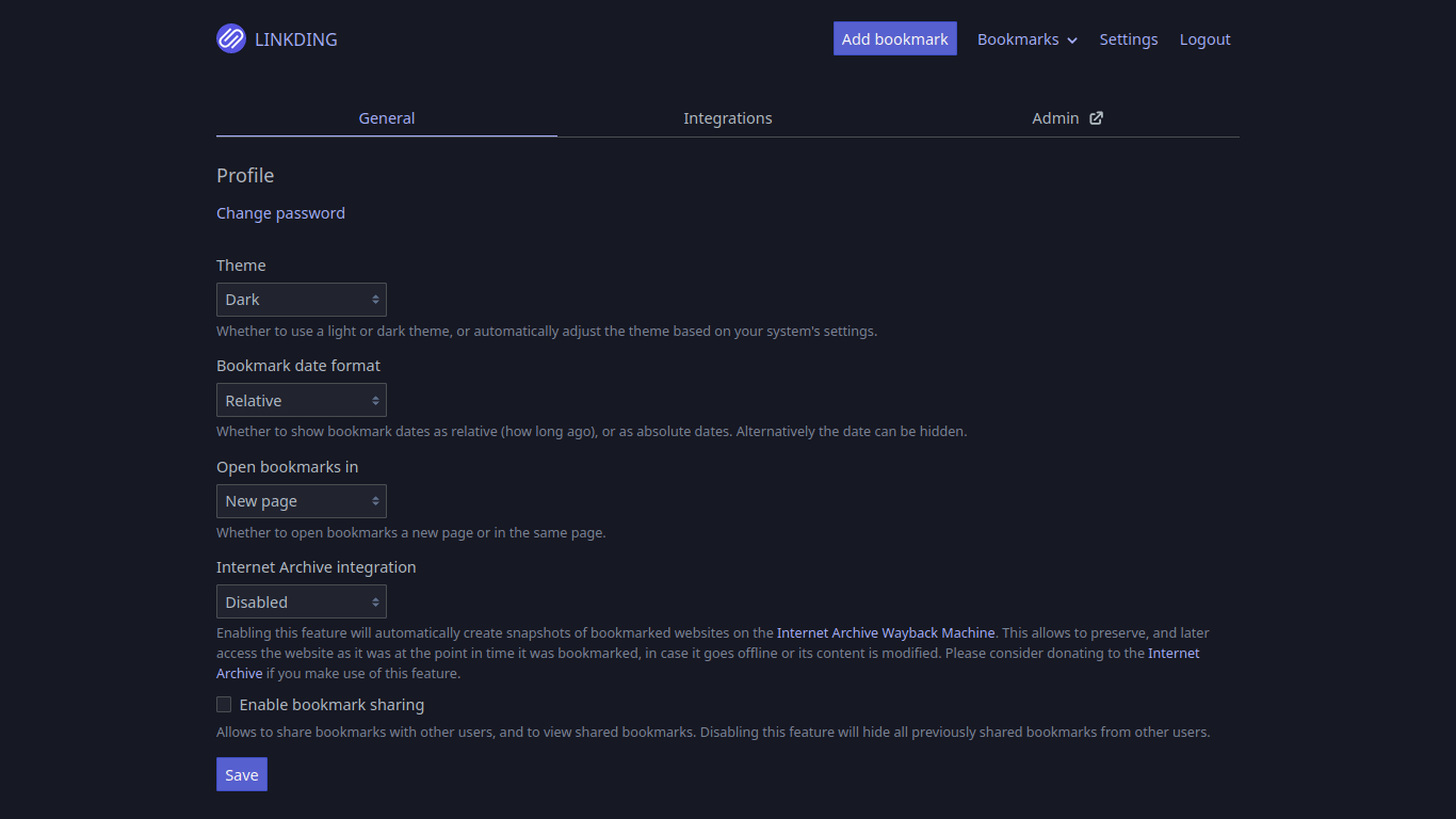 Darüber hinaus erlaubt Linkding für jeden Bookmark die Vergabe eines Titels und einer Beschreibung, wobei die Felder automatisch mit den jeweiligen Infos der Webseite (Title-Tag bzw. Description-Meta-Tag) vorbelegt werden. Auch interessant ist die Möglichkeit die Internet Archive Wayback Machine einzubinden, sodass von der gebookmarkten Seite ein Snapshot erzeugt wird, für den Fall, dass die Seite später weg ist oder anders aussieht. Weitere Features umfassen verschiedene Themes (Dark Mode), eine REST-API sowie die Integration in die gängigen Webbrowser als Erweiterungen (Firefox, Chrome) oder als Bookmarklet.