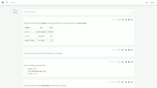 kleine Hilfe gibt es ein Markdown-Cheatsheet das man einblenden kann. Gerade bei eher seltenen Konstrukten wie