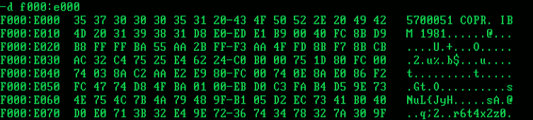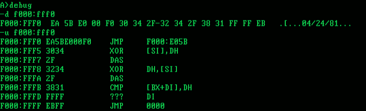Als erstes schauen wir uns diesen Sprung an der Adresse FFFF0H an. Dazu starten wir DEBUG.COM