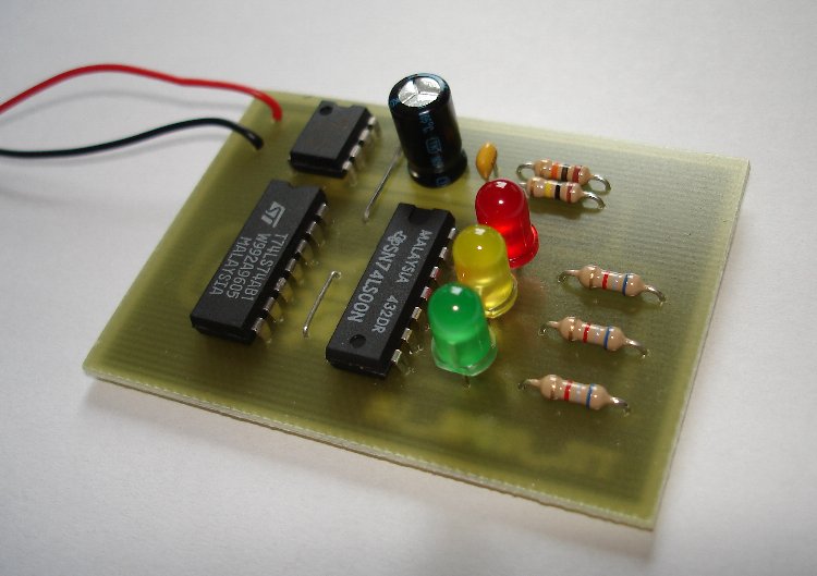 Nachdem ich die Funktion auf dem Steckbrett sorgfältig geprüft habe, habe ich das Ganze auch noch mal als Leiterplatte zum Anfassen hergestellt: