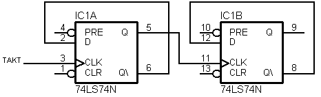 den Takt-Eingang des folgenden Flip-Flops geschaltet werden.