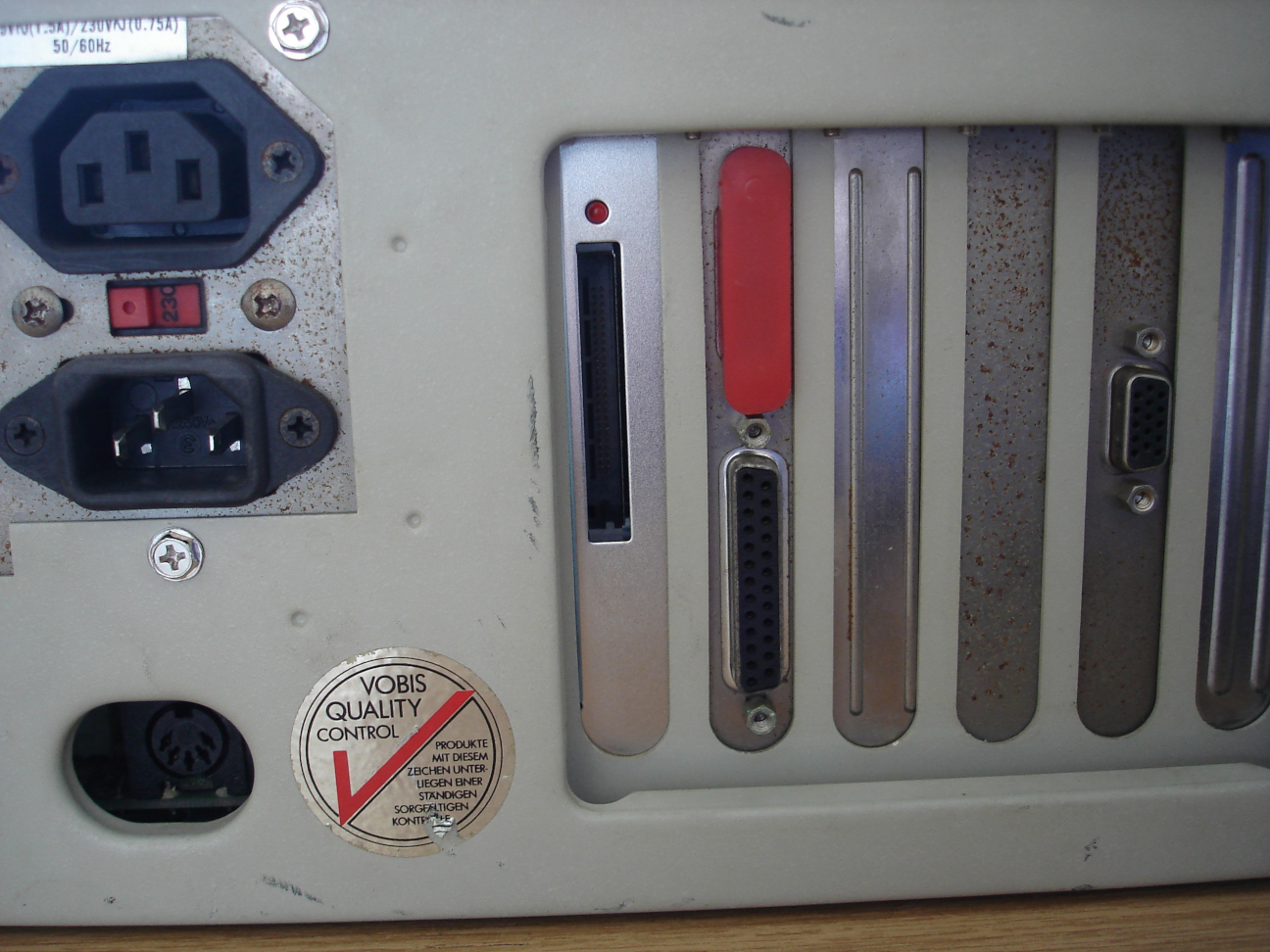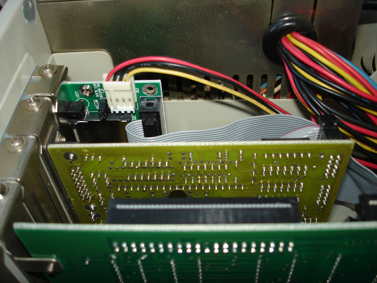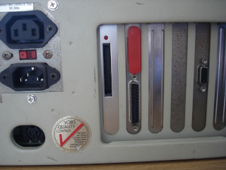 Das alleine wäre für mich noch kein Grund gewesen, die Festplatte zu ersetzen, aber der immense Lärm tat sein übriges. Ich hatte noch überlegt, ob ich eine andere Magnetplatte einbauen sollte, habe mich dann aber für eine Compact-Flash-Lösung entschieden. Während ich bei meinem anderen 286er die dezente Geräuschkulisse einer gut funktionierenden Festplatte zu schätzen weiß, wollte ich für den etwas schnelleren Rechner die Vorzüge der einfacheren Betankung mit Software genießen. Ich hatte ohnehin noch einen CF-Leser mit Slotblende in der Bastelkiste und konnte damit wunderbar den obersten Steckkarten-Platz nutzen, in den auf Grund der Netzteil-Kabelei keine echte Steckkarte gepasst hat. Somit ist diese Ecke auch genutzt und der "Highscreen Kompakt" ist nicht nur kompakt, sondern auch leicht.