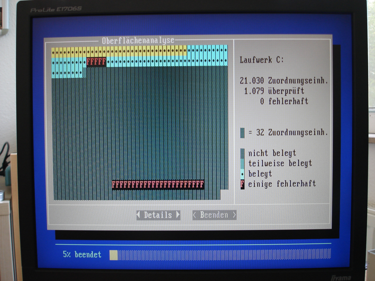 Laufwerk A booten. Beim Formatieren wurden bereits größere Mengen fehlerhafte Sektoren